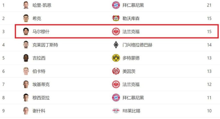 希克能否超越马尔穆什登顶德甲射手榜?